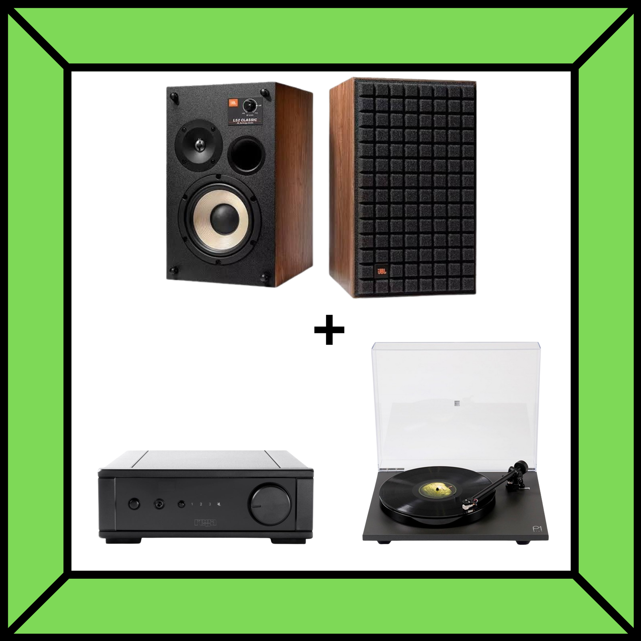 Tornamesa Rega P1 + Amplificador Rega IO + Bocinas JBL L52 Classic + Cables MTN Banana (3m)